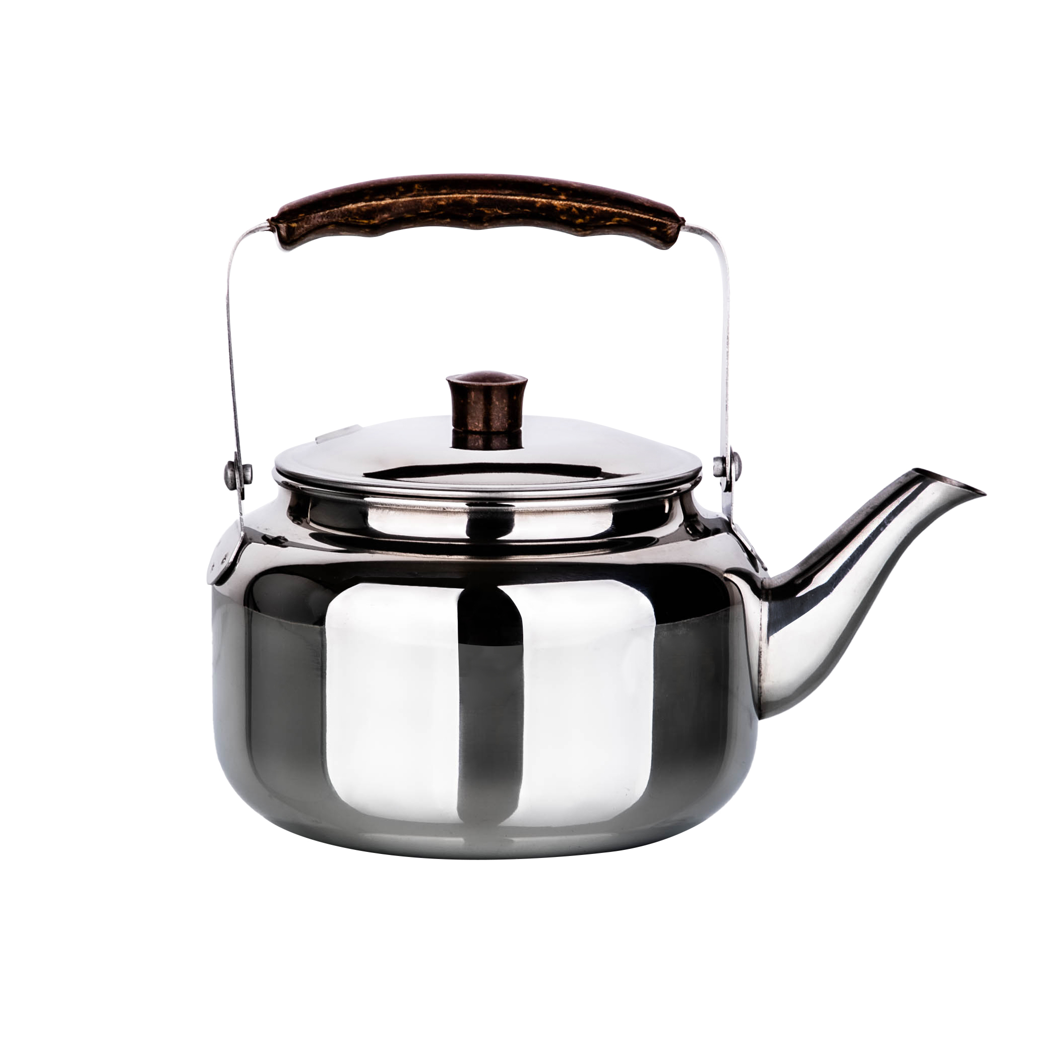 إبريق شاي كلاسيك من بيستر مصنوع من الستانلس ستيل، مع مقبض لون بني غامق