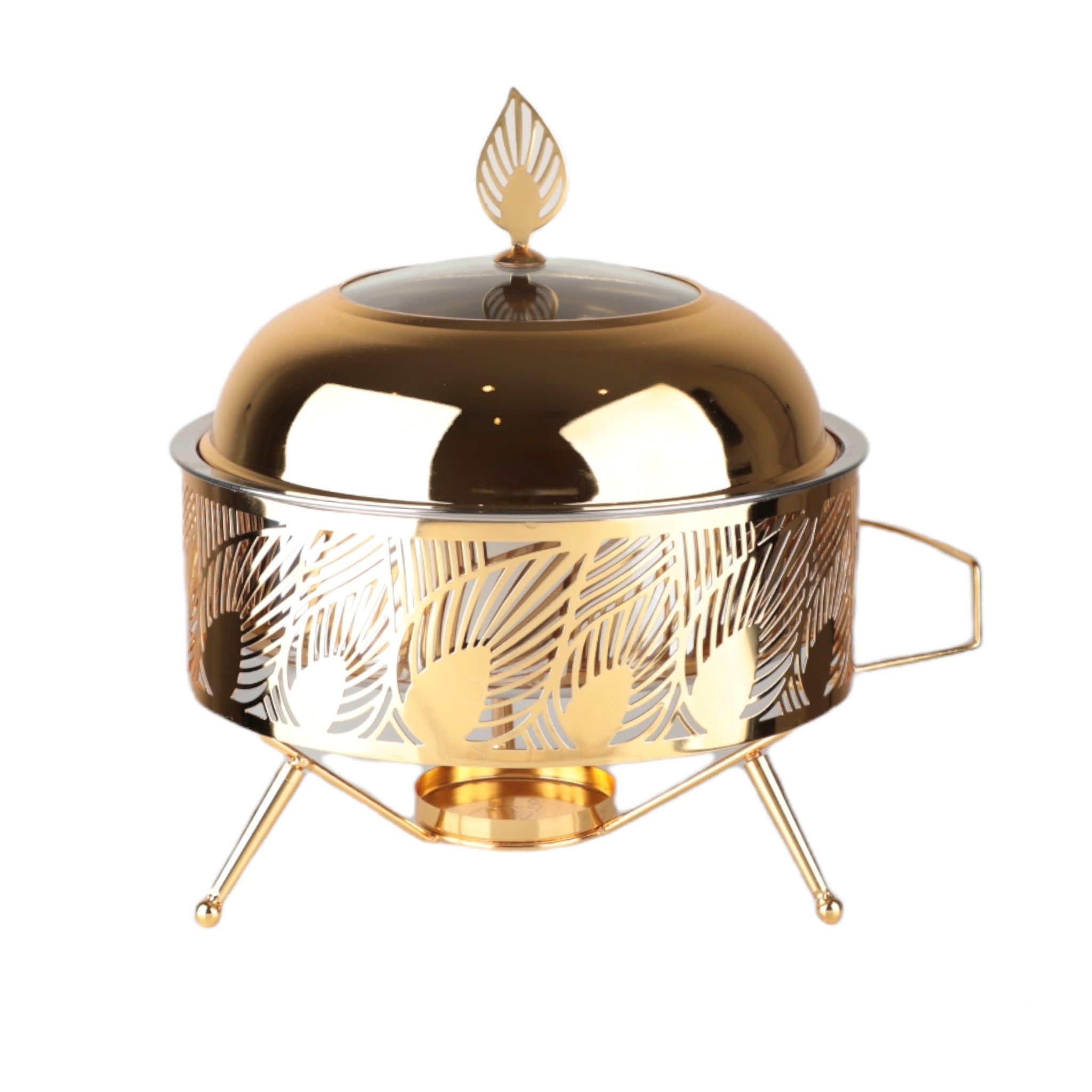 سخان طعام من سوليتير، لون ذهبي، مصنوع من الاستيل الفاخر ذو غطاء وحامل سخّان يضمن لك بقاء الطعام دافئًا وطازجًا مدة طويلة.